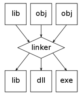 Note that not all operating systems create a single executable. Windows, for example, uses DLLs that keep all these functions together in a single file. This reduces the size of your executable, but makes your executable dependent on these specific DLLs. DOS used to use things called Overlays (.OVL files). This had many purposes, but one was to keep commonly used functions together in 1 file (another purpose it served, in case you’re wondering, was to be able to fit large programs into memory. DOS has a limitation in memory and overlays could be “unloaded” from memory and other overlays could be “loaded” on top of that memory, hence the name, “overlays”). Linux has shared libraries, which is basically the same idea as DLLs (hard core Linux guys I know would tell me there are MANY BIG differences).