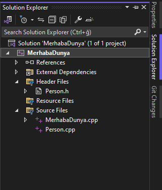 İki tane yeni dosyamız geldi. Bunlardan biri .h öteki ise .cpp