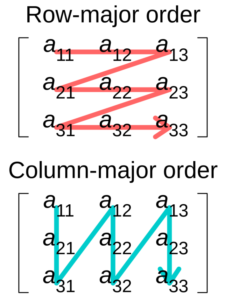 Yukarıda 2 boyutlu bir array görüyorsunuz. Bizler de aşağıda kendi çok boyutlu dizimizi oluşturacağız. Çok boyutlu arrayler hafızada tek boyutlu array gibi dizilir çünkü hafızanın(RAM) kendisi de tek boyutlu bir arraydir. Bizler satır ve sütun sayılarını alıp bunun hangi indekse karşılık geldiğini bulacağız. Biz bunu hesaplarken row-major order ı kullanacağız. Bazıları column-major order kullanmakta.